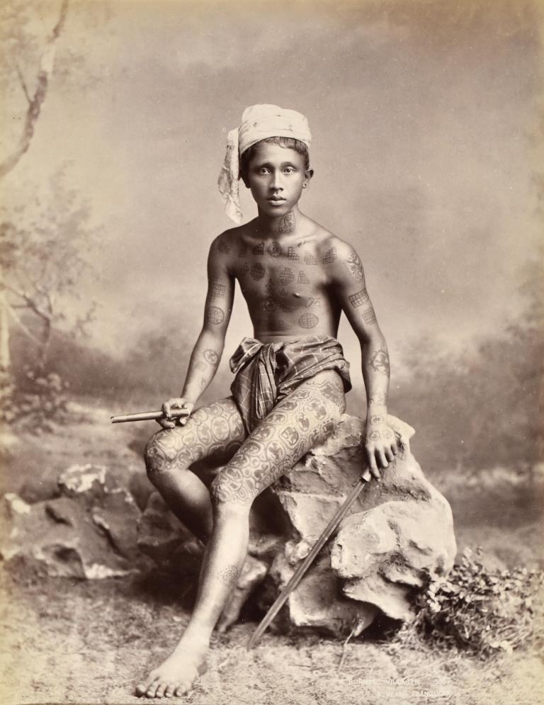 Titré et signé dans le négatif « Burmese villager/P.Klier/Rangoon » en bas à droite